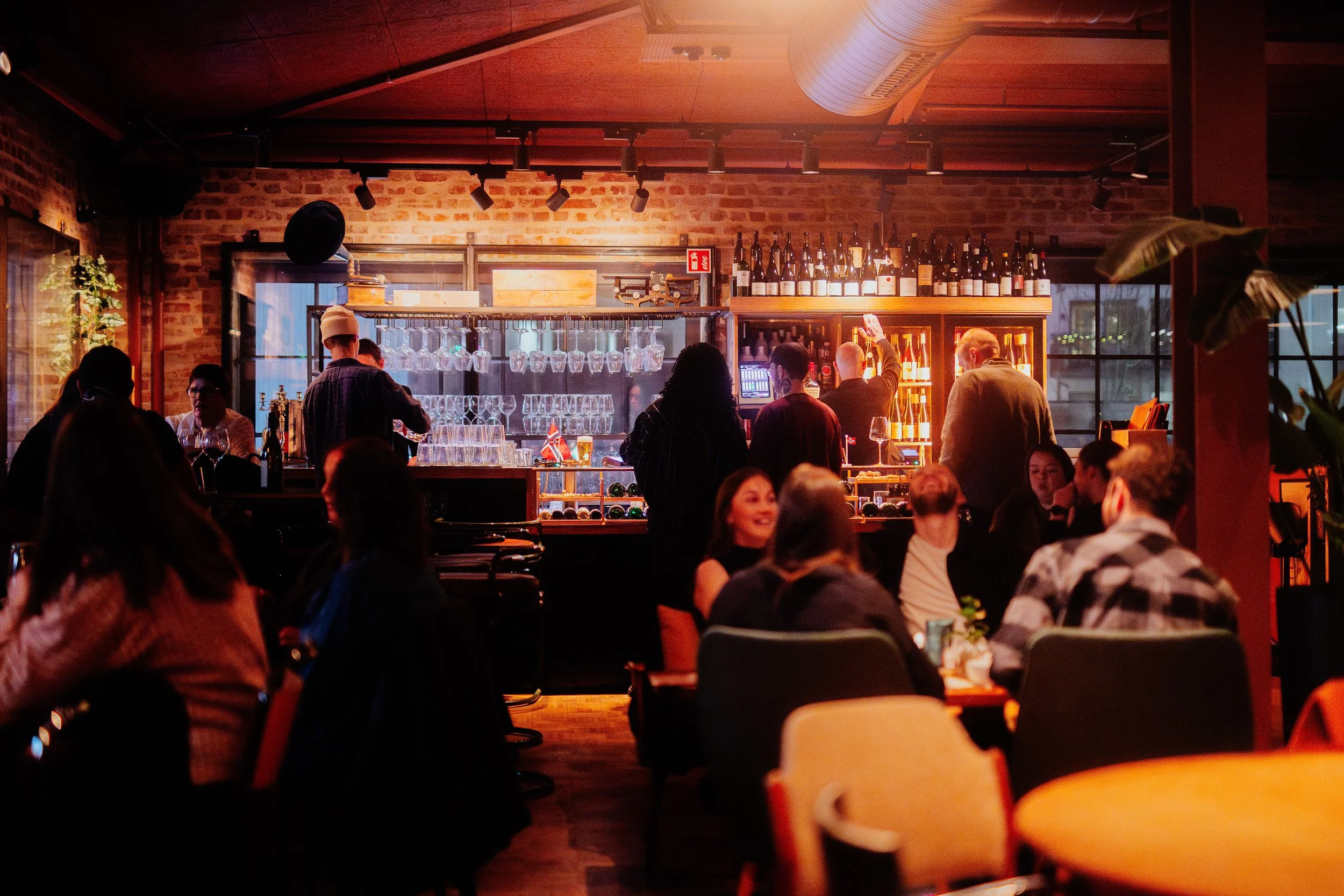 Her kan du nyte et nøye selektert utvalg av viner på glass eller velge mellom våre 250 viner på flaske, her finnes alt i fra spennende musserende, friske, krystallklare hvite til dype, komplekse røde. Om ikke det skulle slukke tørsten, er det også mulighet for en cheeky øl på tapp, selv i vinbaren.